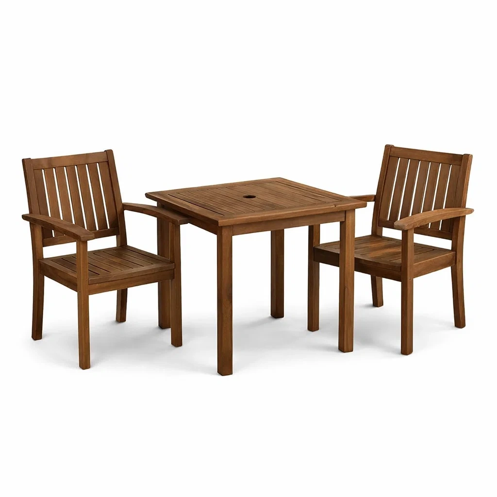 Terrassenmöbel Set aus Akazienholz mit quadratischem Tisch und 2 Stühlen Naturholz