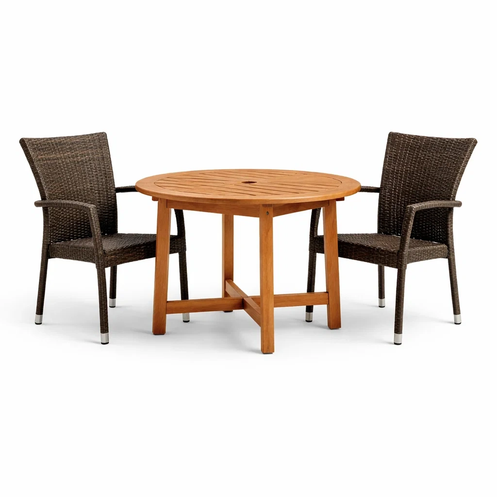 Terrassenmöbel Set aus Eukalyptusholz mit rundem Tisch und Stühlen aus Polyrattan