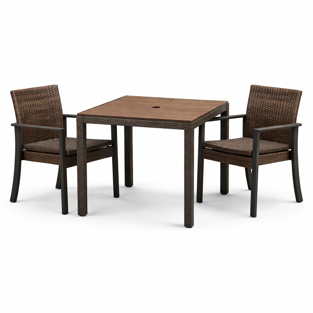 Terrassenmöbel Set aus PE Rattan und Stahl Braun mit quadratischem Tisch und 2 Stühlen