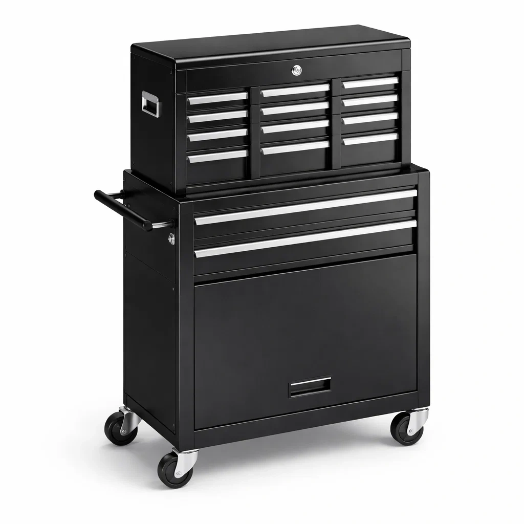 Der Werkzeugwagen besteht aus hochwertigem Stahl und bietet zahlreiche Aufbewahrungsmöglichkeiten für verschiedene Werkzeuge.